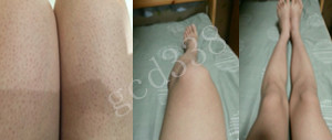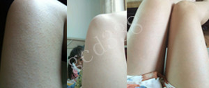 王女士 :我鸡皮肤10年,由于时间太长,皮肤老化严重,看上去很恐怖,基本是不能穿露脐装,使用这个产品已经3个月了,以前听朋友说过这产品,才用了半个月皮肤吸收挺好的,使用1个月的时候就开始变淡,发生变化的时候很欣喜,终于可以摆脱烦人的鸡皮肤了!我的鸡皮肤属于比较严重的情况,皮肤有些干燥萎缩了,真没想到10年的鸡皮肤也可以去到这样的情况,这个产品最让我满意的就是这一点了!