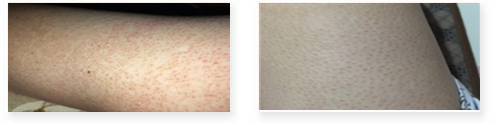 孙女士:鸡皮肤就像心口的刀疤,为了这我不知道花了多少钱也没修复好,我想这鸡皮肤或许就这么跟定我一辈子了,可是才用了这个产品一个月效果就很明显,最初的是红点颜色变淡了,纹理也变淡了,使用2个月,烦恼我12多年的鸡皮肤全都没了,老公都惊讶的要死!很高兴啊!