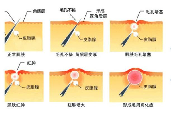 04由于毛囊皮脂腺管之开口处有角化现象,形成所谓的“角栓”,而硬化之后会导致毛孔闭塞。